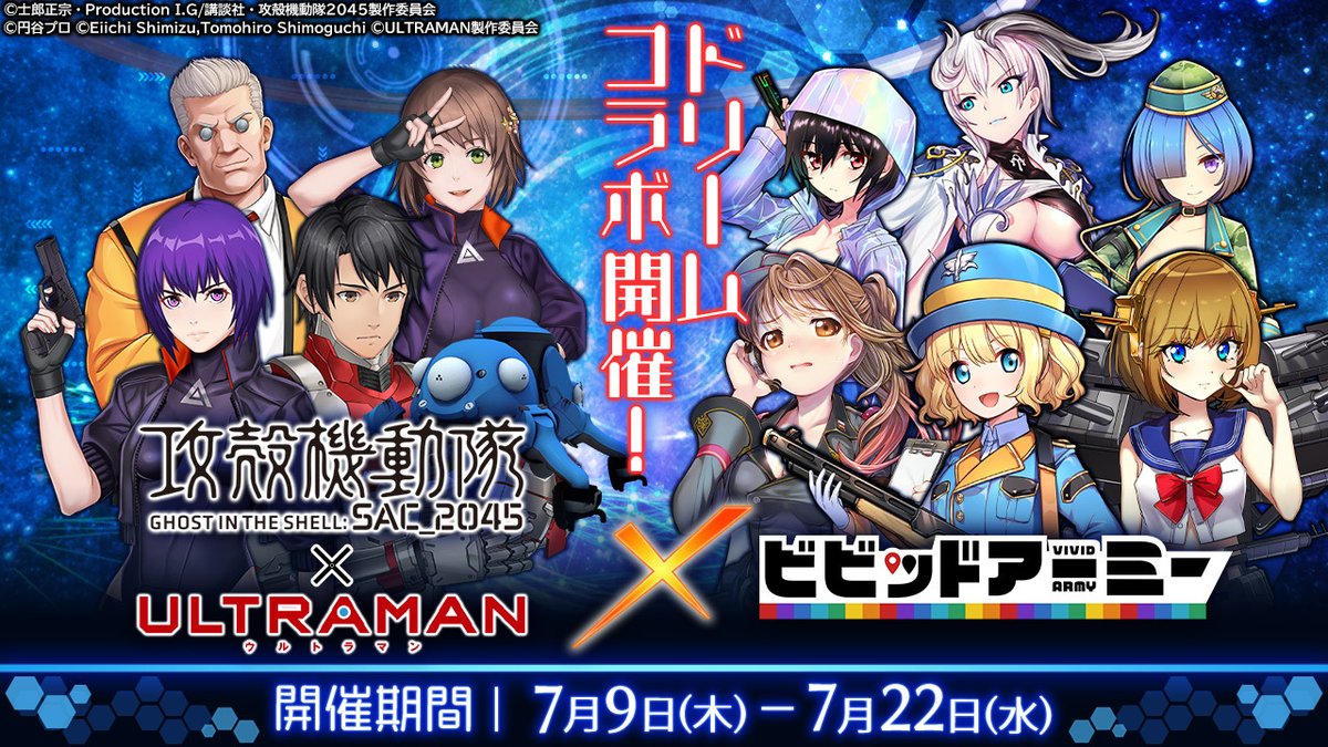 Ultraman 漫画 アニメ公式 در توییتر ドリームコラボスタート 科特隊と公安9課が合同捜査 攻殻機動隊 Sac 45 Ultraman ビビッドアーミーのゲームコラボがスタート 素子の戦闘服を纏ったレナ 科特隊 隊員服姿の素子やバトー ウルトラマン